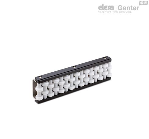 Shaped with cylindrical contact area, in acetal resin technopolymer, white colour.