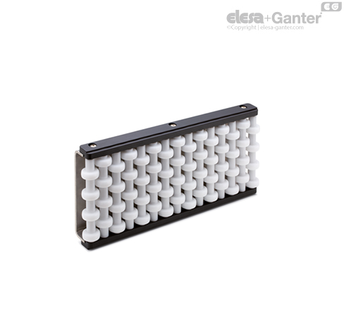 Shaped with cylindrical contact area, in acetal resin technopolymer, white colour.