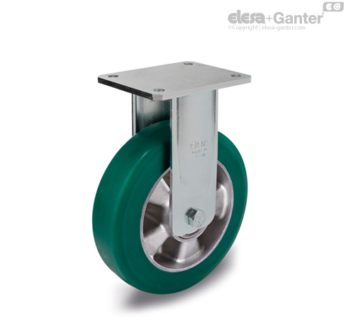 Suitable for heavy industrial applications and severe conditions of use, such as impact and high speeds. The mould-on polyurethane wheel ensures excellent rolling resistance and elasticity, high wear and tearing resistance. For further information see RE.F2.