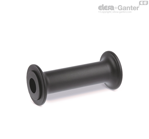 The plain pass-through hole allows the handle to rotate and translate freely on the shaft.