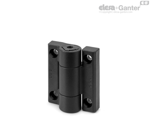 The adjustment system (ELESA patent) is activated by exerting force on a special screw located in the axis of the hinge, which allows the resistant torque of the hinge to be increased or decreased in a controlled manner in both directions.