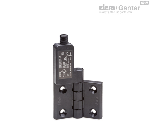 - The hinge with built-in switch (ELESA patent) is a safety device because in case of accidental opening of doors, machine protections, or safety doors on machines and production equipment, it automatically breaks off the power supply hence protecting the operators.