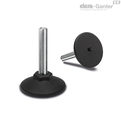 Polyamide based (PA) technopolymer with adjusting hexagon, black colour, matte finish.