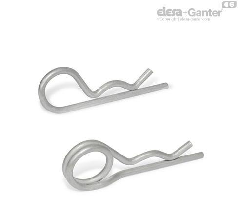 Owing to their double winding, spring cotter pins of Type D have a flatter spring characteristic and are therefore easier to install. Also, a retaining rope inclding a key ring can be attached to the double winding to safeguard the spring cotter pins against loss.