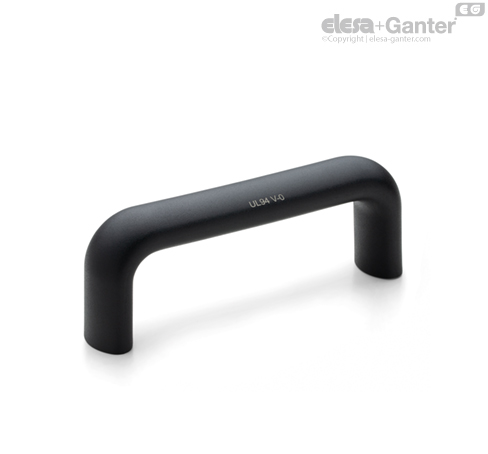 Glass-fibre reinforced polyamide based (PA) technopolymer certified self-extinguishing UL-94 V0, black colour, matte finish.
