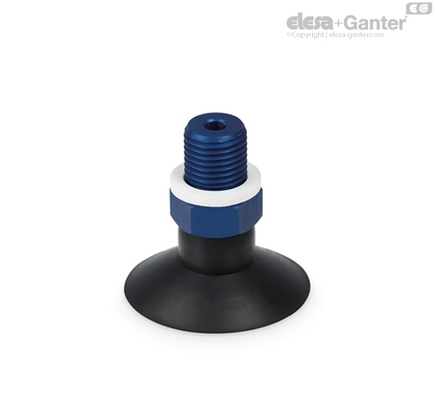 Vacuum cup in oil-proof rubber (NBR), natural (NR), or silicone (VMQ).