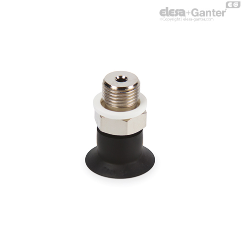 Vacuum cup in oil-proof rubber (NBR), natural rubber (NR), natural yellow rubber (NG), or silicone rubber (VMQ).