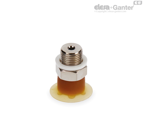Vacuum cup in oil-proof rubber (NBR), natural rubber (NR), natural yellow rubber (NG), or silicone rubber (VMQ).