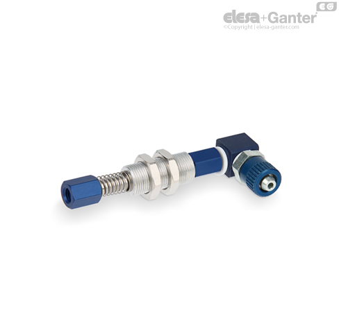Air fitting in blue anodised aluminium and AVP steel.