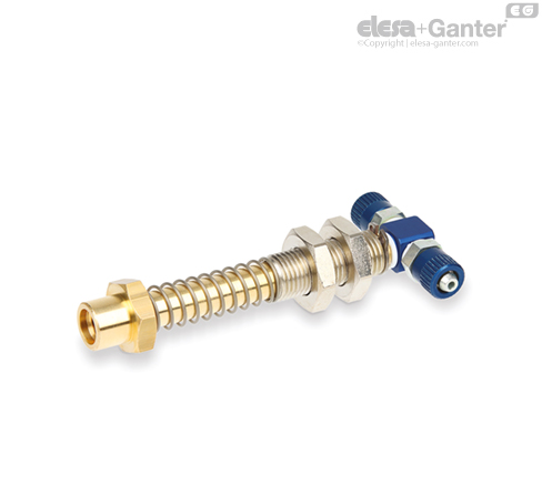 Air fitting in blue anodised aluminium and AVP steel.