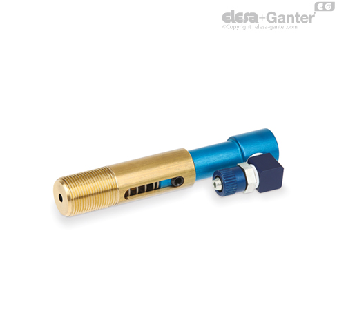 Air fitting in blue anodised aluminium and AVP steel.