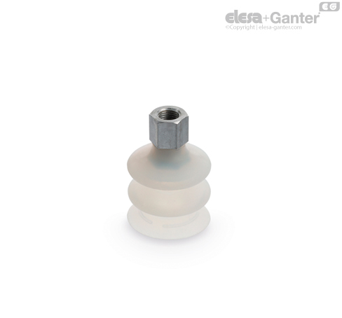 Vacuum cup in oil-proof rubber (NBR), natural (NR), or silicone (VMQ).