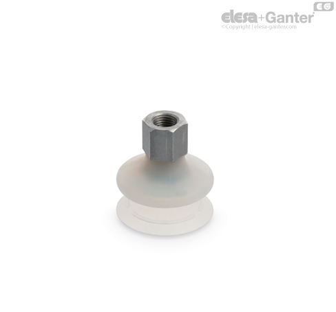 Vacuum cup in oil-proof rubber (NBR), natural (NR), or silicone (VMQ).