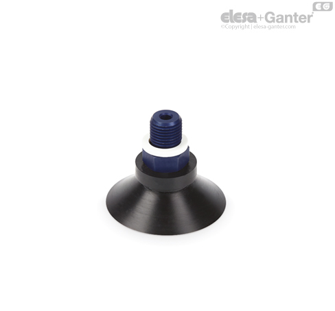 Vacuum cup in oil-proof rubber (NBR), natural rubber (NR), natural yellow rubber (NG), or silicone rubber (VMQ).